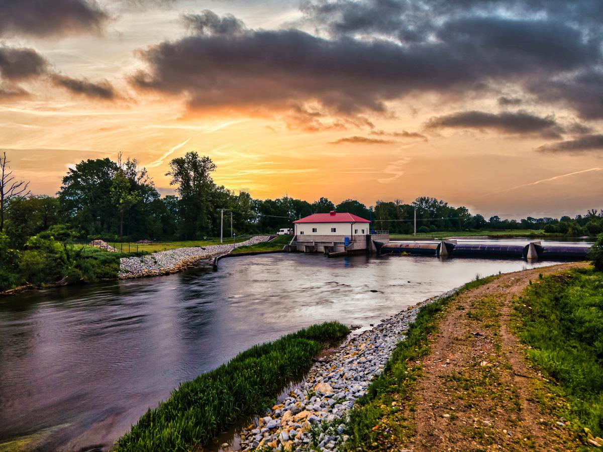 Integralnym elementem inwestycji jest jaz powłokowy trójprzęsłowy, umożliwiający skuteczną regulację poziomu piętrzenia wody oraz stabilne warunki pracy turbin. Zastosowanie konstrukcji trójprzęsłowej pozwala na sprawne zarządzanie przepływem wody, zwiększa bezpieczeństwo hydrotechniczne oraz ułatwia eksploatację obiektu w okresach zmiennych stanów wód.